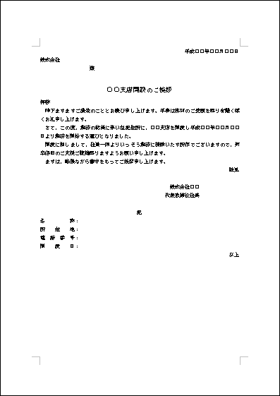 > 支店等開設の挨拶状