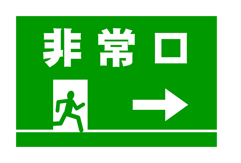 注意や警告、警告を促す場所に使えるラベルを準備しました。また、非常口の場所を案内するラベルもあります。