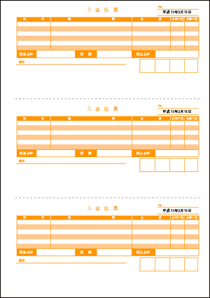 > 入金伝票3面カラー(税額あり)