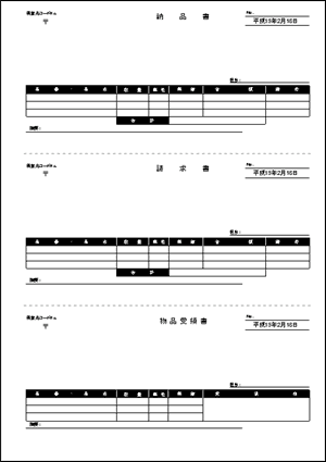 > 納品書/請求書/物品受領書 モノクロ(税抜)